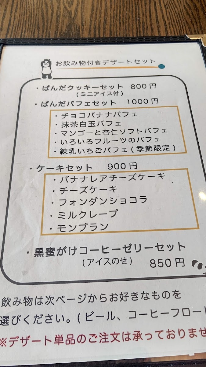 Panda Coffee Menu